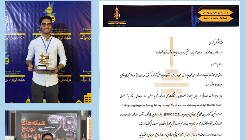 ✅کسب عنوان مقاله برتر سخنرانی در بیستونهمین کنفرانس بینالمللی شبکههای توزیع نیروی برق کشور