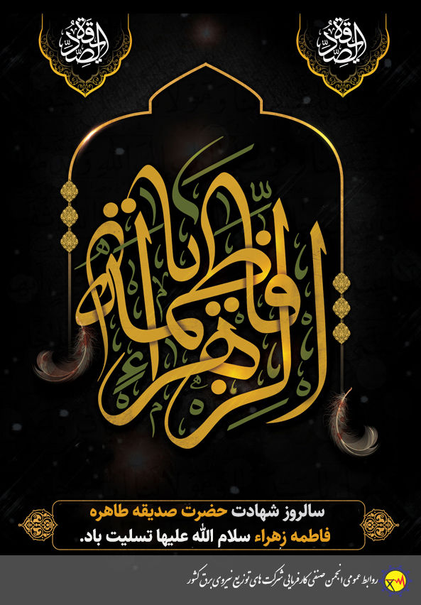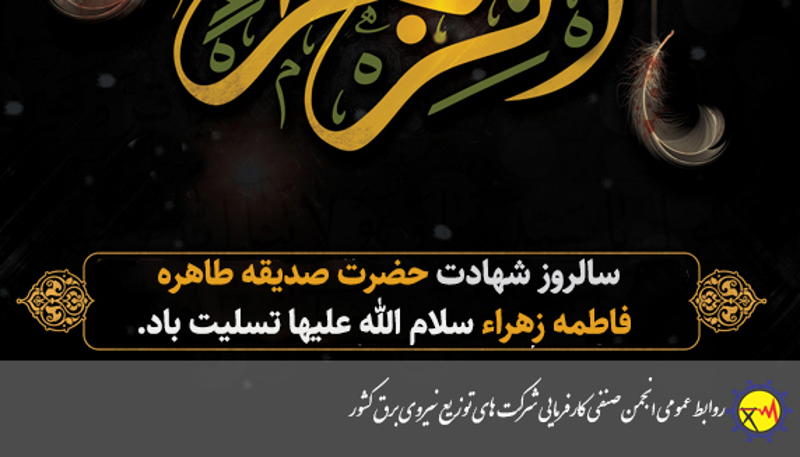 ◾انجمن صنفی کارفرمایی شرکت های توزیع نیروی برق، فرارسیدن ایام غم بار فاطمیه و سالروز شهادت حضرت فاطمه زهرا (سلام الله علیها) ، بی بی دو عالم، پاره تن پیامبر (صلی الله علیه و آله) و اسوه زنان عالم را بر محضر مبارک حضرت ولی عصر (عج الله تعالی فرجه الشریف) و تمامی شیعیان و محبان حضرتش تسلیت عرض مینماید.