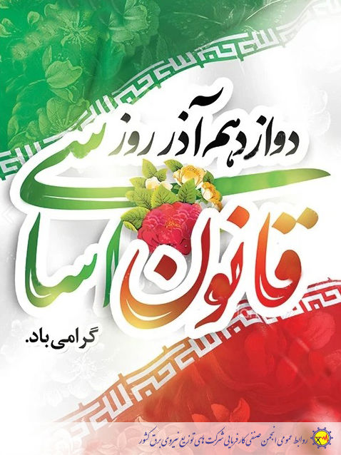 🔹 انجمن صنفی کارفرمایی شرکتهای توزیع نیروی برق کشور، این روز مهم را به تمامی مردم شریف ایران تبریک عرض می نماید و یادآوری می نماید که پایبندی به قانون اساسی، رمز توسعه و اعتلای ایران عزیز است.